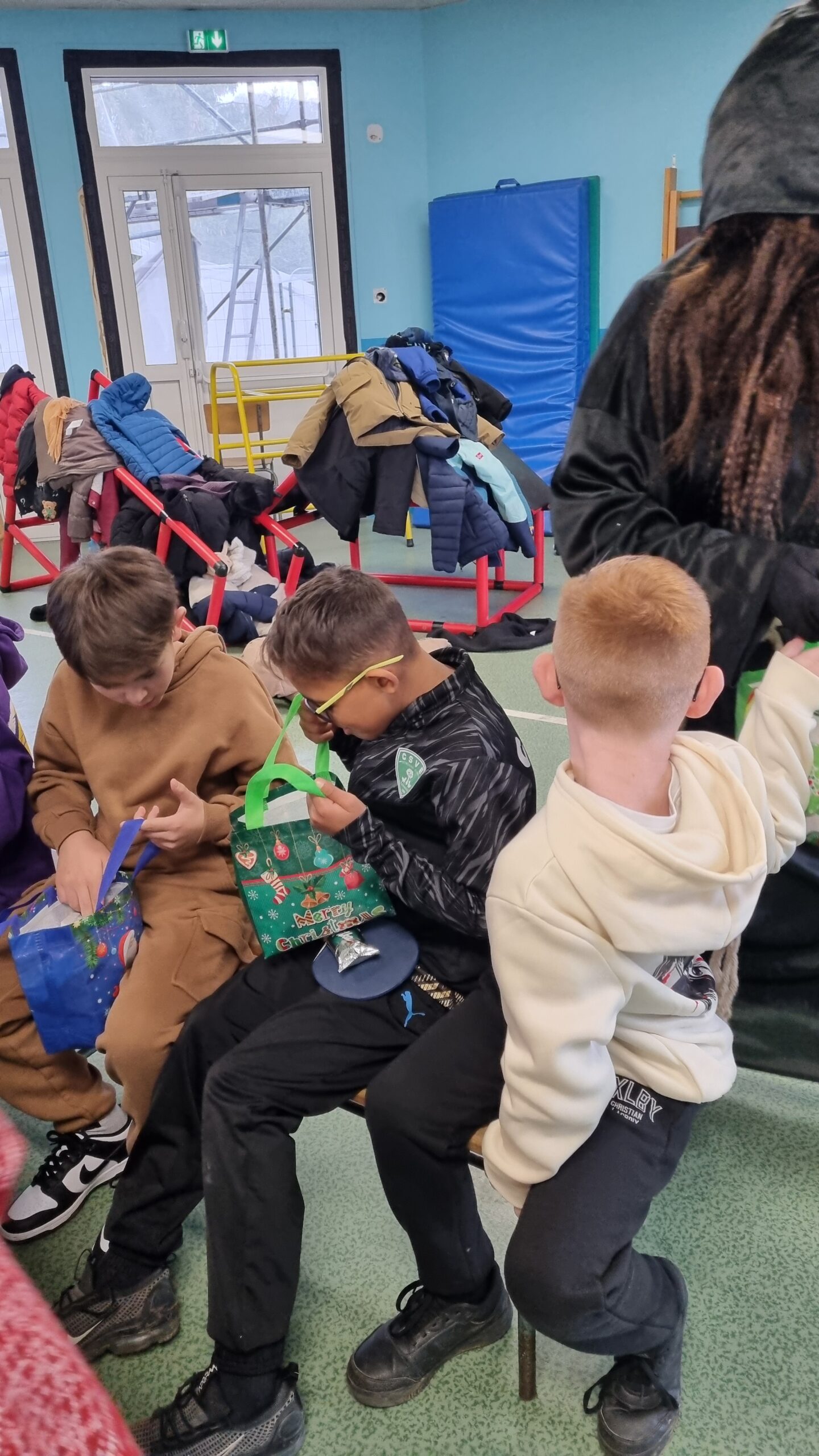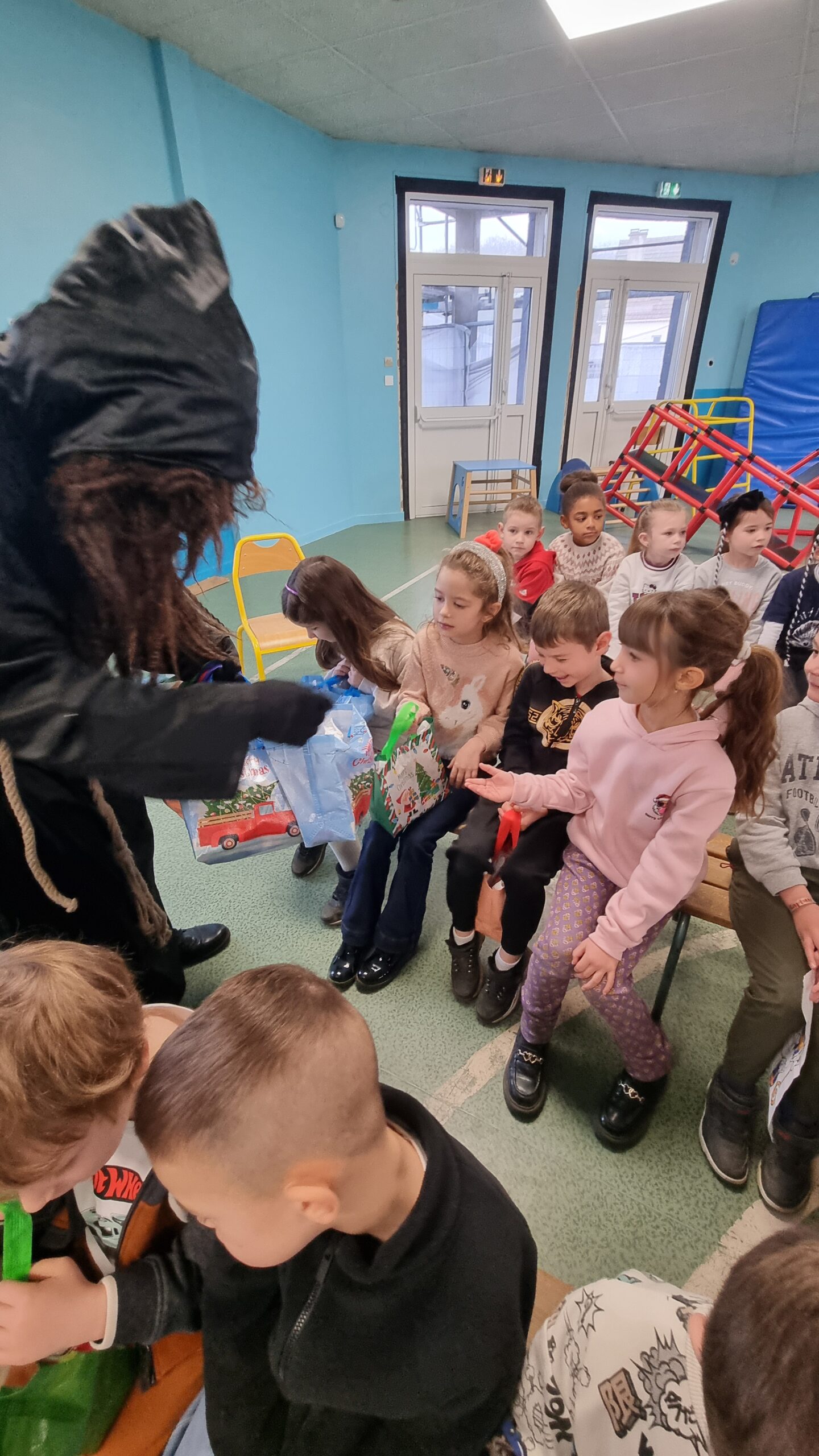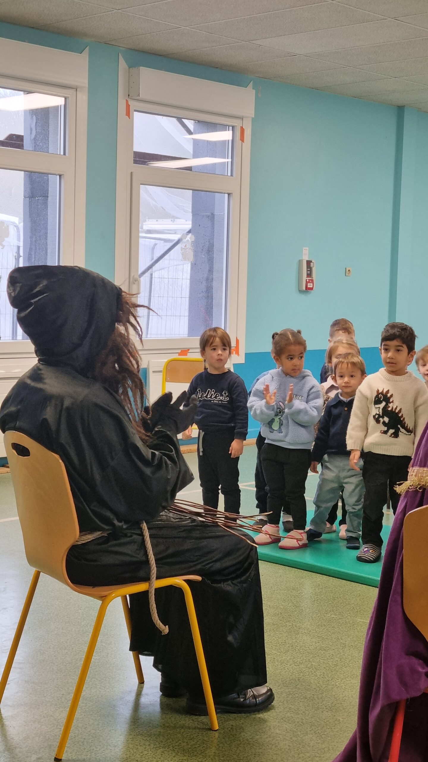 Les enfants avaient préparés des dessins et des petits chants et ont été récompensés par des friandises et un manele!
