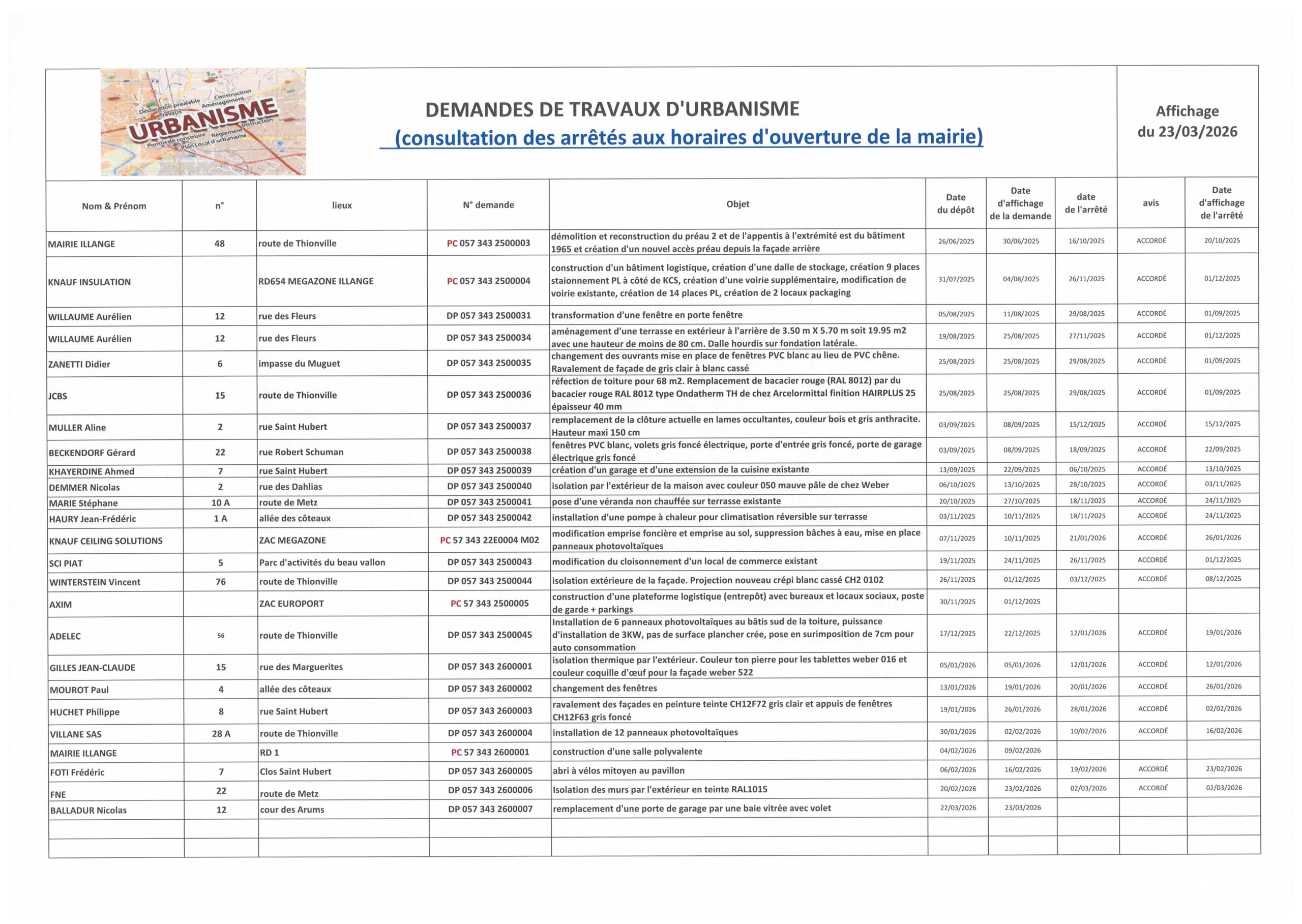 urbanisme au 23 mars 2026