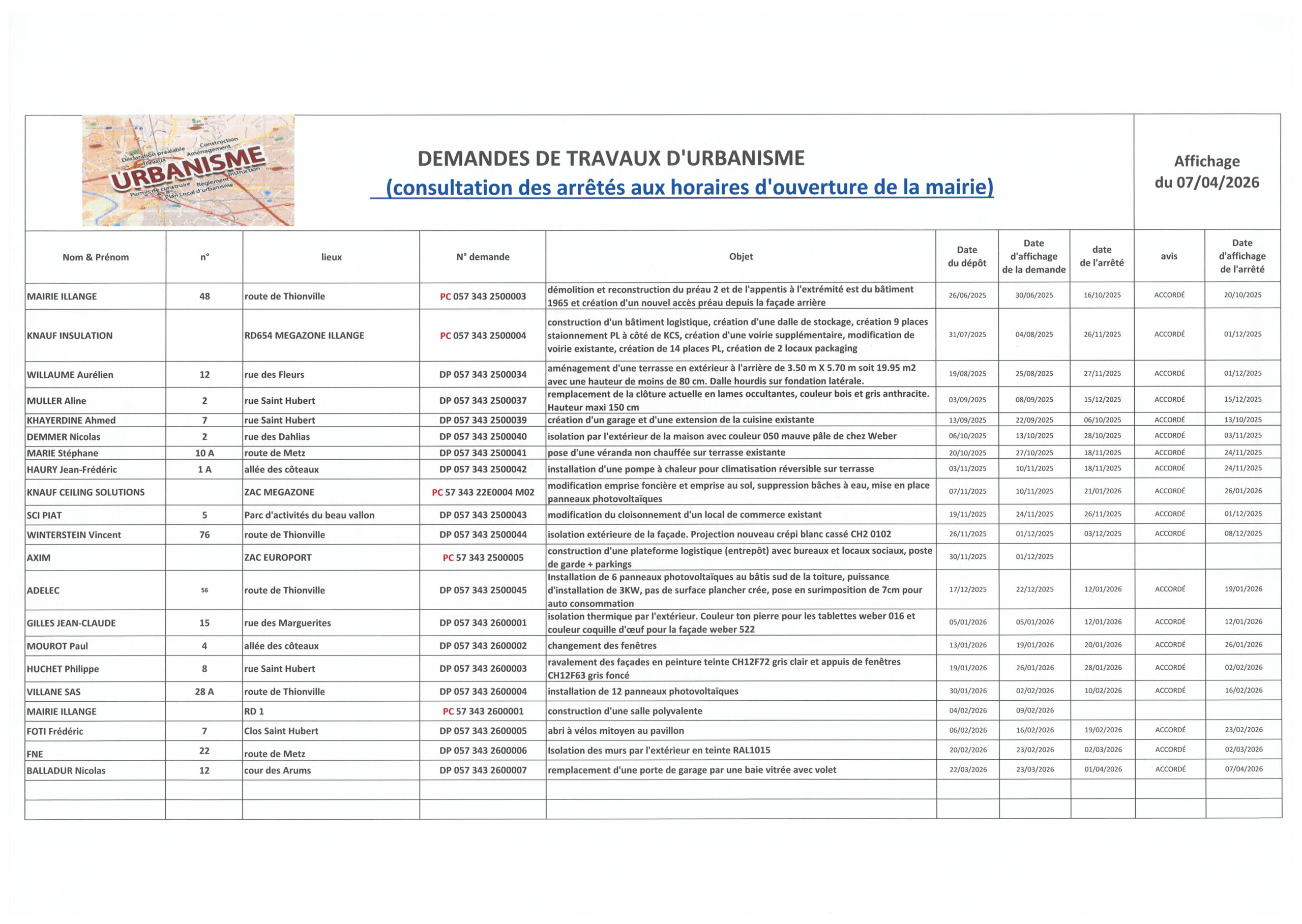 urbanisme au 7 avril 2026